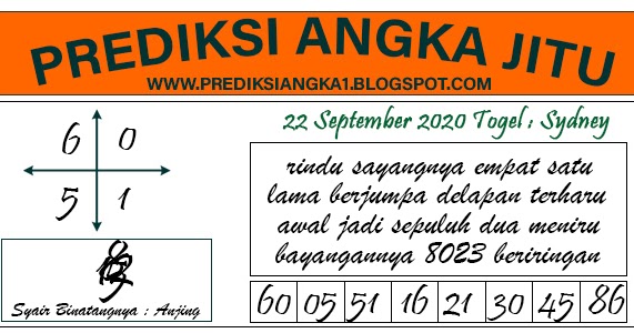 Prediksi Togel Akurat Sydney Selasa 22 September 2020 PREDIKSI ANGKA